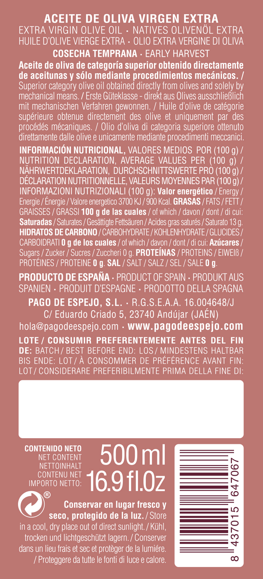 Aceite de Oliva Virgen Extra Pago de Espejo Arbequina