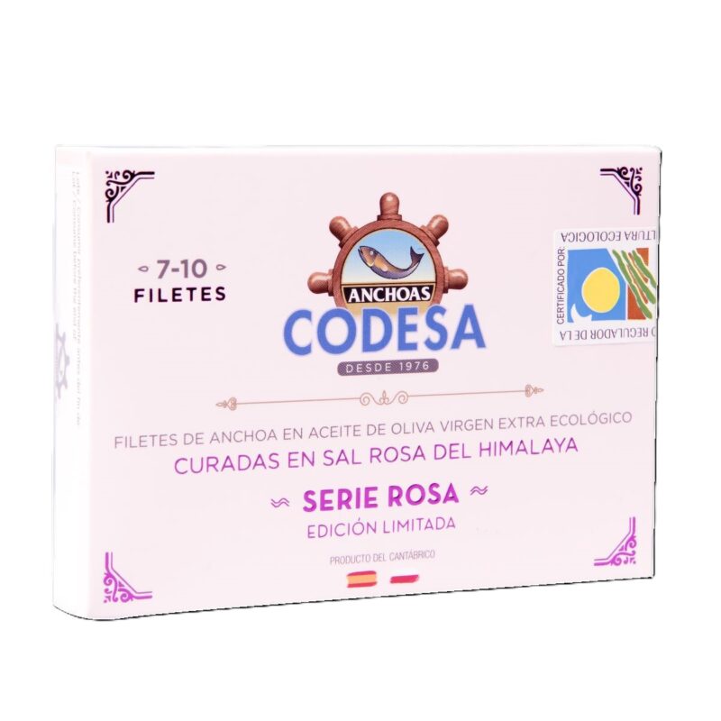 Por un lado, Edición Limitada-Serie Rosa reúne bocartes de primera calidad. Para este producto, Codesa utiliza siempre la variedad Engraulis Encrasicolus del Cantábrico, distinta a las de otros mares, que es pescada al cerco, el método más selectivo, ecológico y tradicional.