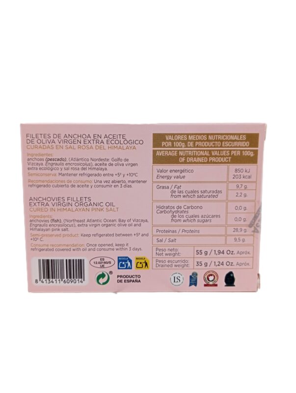 Por otro lado, Codesa utiliza para curar sus anchoas la sal más pura, libre de contaminación y rica en hierro, calcio y magnesio que existe. La Sal Rosa del Himalaya, donde los peces permanecen durante unos doce meses antes de ser limpiados a mano y fileteados, está extraída de océanos fósiles primitivos y proporciona múltiples beneficios para la salud. No sólo contribuye a la mineralización adecuada de los huesos, sino que ayuda a prevenir calambres musculares o a regular el contenido de agua en el cuerpo y los fluidos internos.