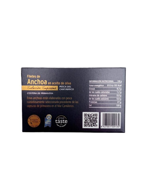 Anchoas Catalina. Estas anchoas Selección Suprema han sido elaboradas con pesca cuidadosamente seleccionada de las capturas de primavera en el Mar Cantábrico. Trabajadas de forma artesanal, a mano, meticulosamente de una en una, las anchoas de Conservas Catalina son de un mayor calibre, y su color, sabor, textura y punto de sal las diferencia en el paladar.