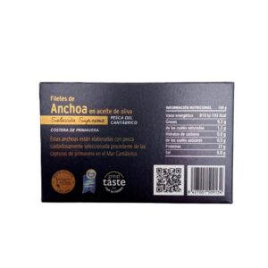 Ingredientes: Filetes de Anchoa del Cantábrico Engraulis encrasicolus, aceite de oliva y sal.