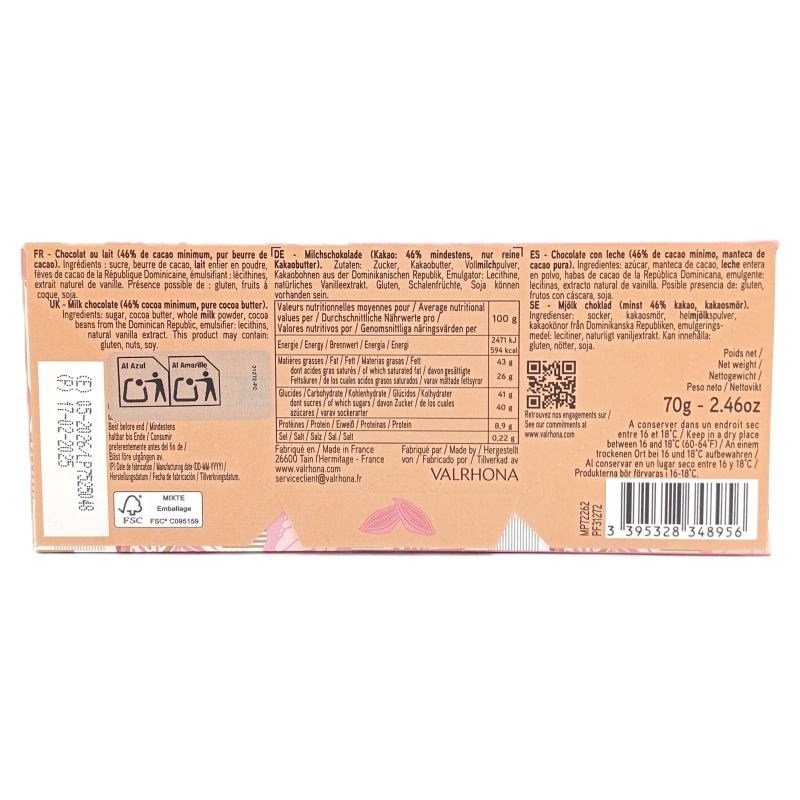 Chocolate Valrhona Lait Bahibe 46% cacao 70 gramos