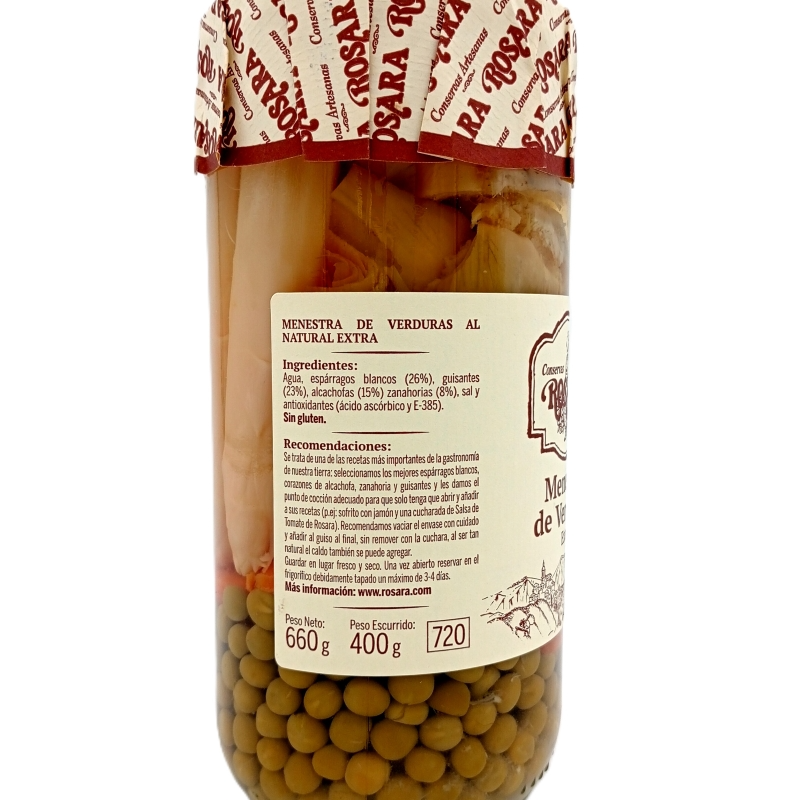 Menestra de Verduras Rosara, con las mejores verduras. Comprar conservas gourmet a domicilio es muy sencillo en diferente.es