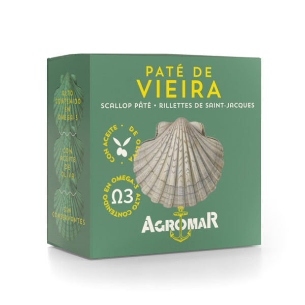 El Paté de Vieira Agromar es una exquisita especialidad elaborada a partir de vieiras seleccionadas y trabajadas con esmero para preservar toda su delicadeza y sabor marino. Su textura suave y cremosa, junto con su equilibrado punto de condimentación, lo convierten en una auténtica experiencia gastronómica que evoca la tradición conservera del norte de España.