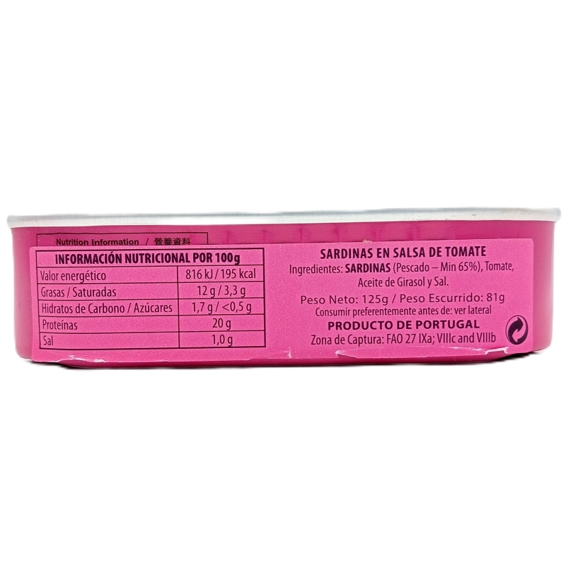 Las Sardinas en Salsa de Tomate Porthos son una deliciosa fusión entre la frescura del pescado y la dulzura natural del tomate. Elaboradas con sardinas seleccionadas cuidadosamente, esta conserva destaca por su textura firme, jugosa y su sabor auténtico, enriquecido con una salsa de tomate casera, ligeramente especiada, que realza cada bocado.