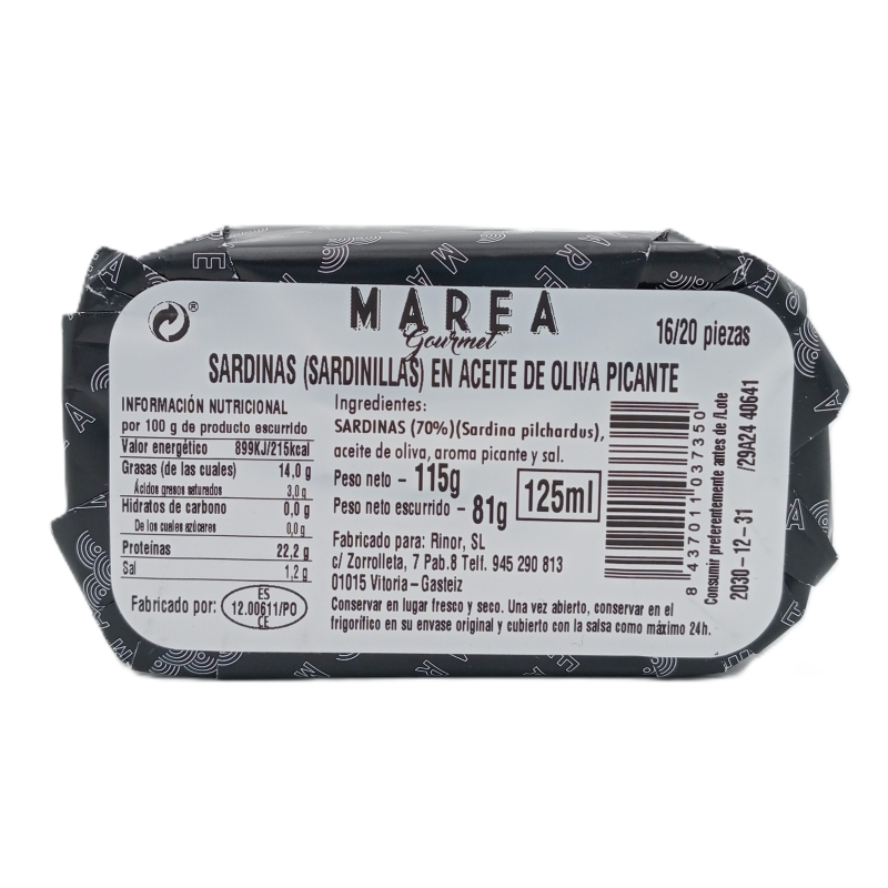 SARDINILLAS PICANTES EN ACEITE DE OLIVA MAREA GOURMET