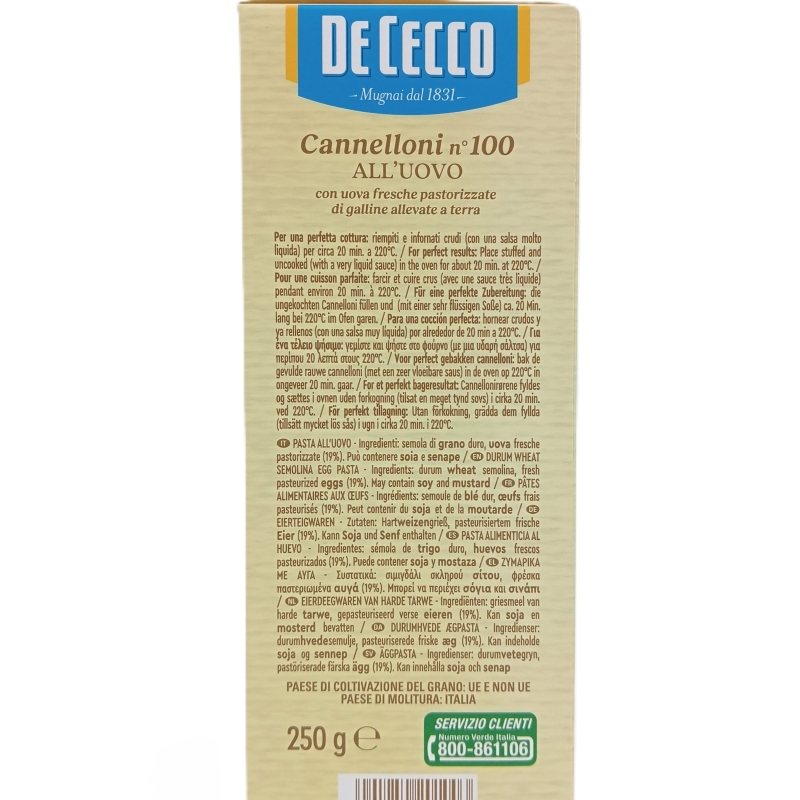 Pasta italiana De Cecco Cannelloni n 100