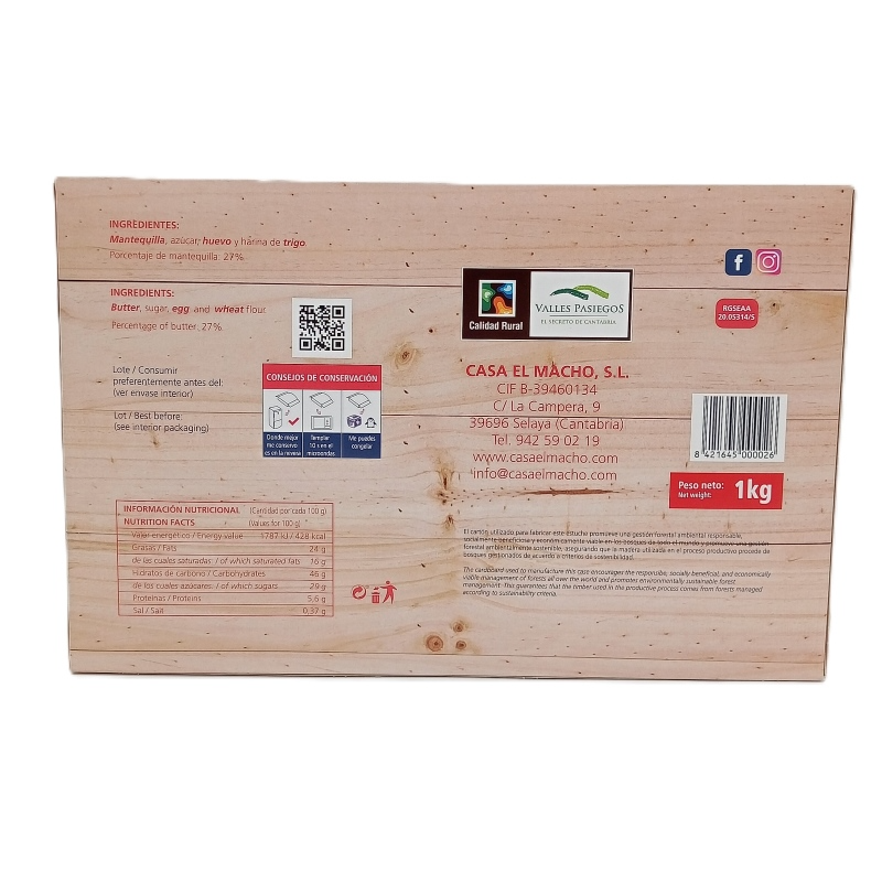 Los ingredientes básicos son cinco: mantequilla, huevos, harina, azúcar e impulsor. Sin Conservantes. Es un producto artesano típico de Cantabria. Su miga es características por su color amarillo intenso.