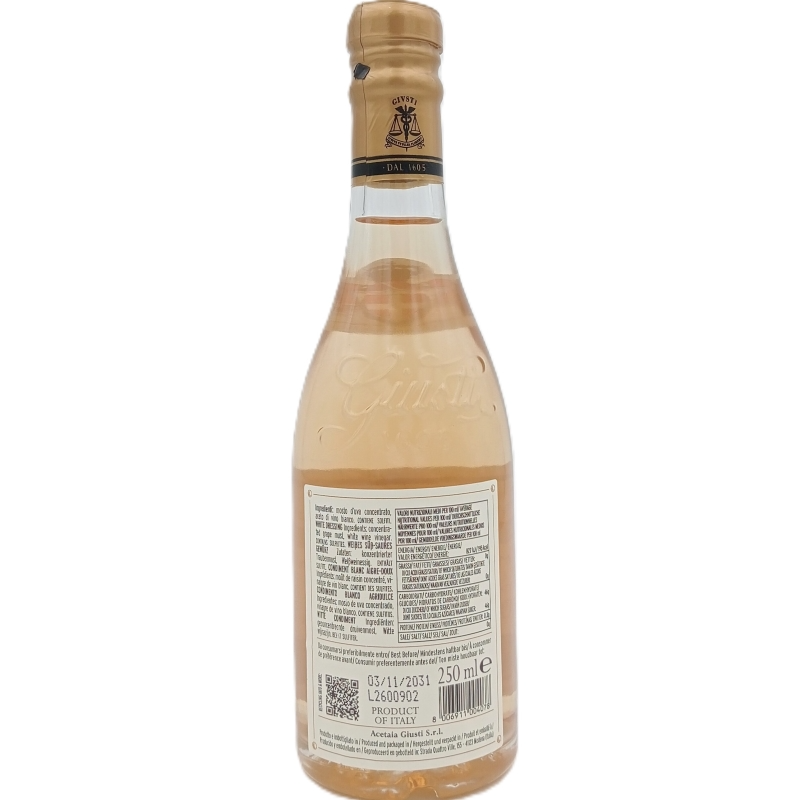 El Vinagre Blanco Champagnotta Giuseppe Giusti 250 ml es una creación de una de las casas más prestigiosas de Italia. Elaborado con el saber hacer tradicional de Giusti, este vinagre destaca por su pureza, su refinamiento y su cuidada elaboración, pensada para realzar sin enmascarar los sabores.