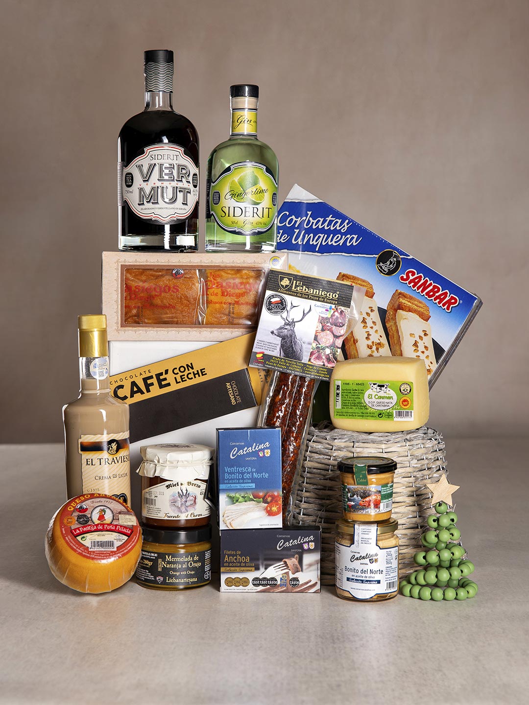 Tenemos la cesta de Navidad en Cantabria perfecta para ti, ajustada a tus exigencias y gustos. Las cestas pueden estar formadas por dulces navideños, selección de ibéricos y bebidas premium. Pídenos lo que necesites y te haremos un presupuesto a medida. Calidad 100%.