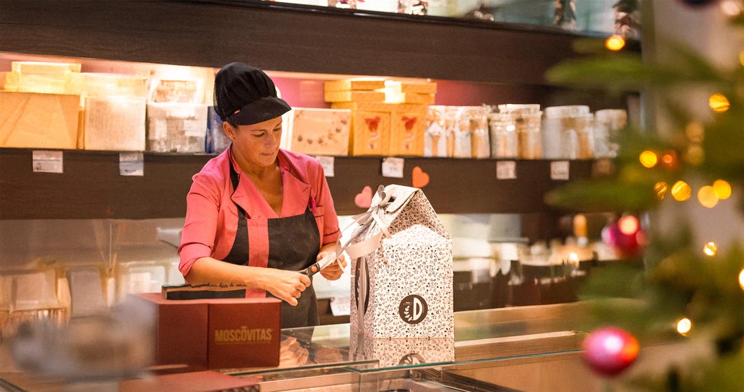 - Cestas para regalar en una amplia variedad de precios y tamaños con productos navideños.