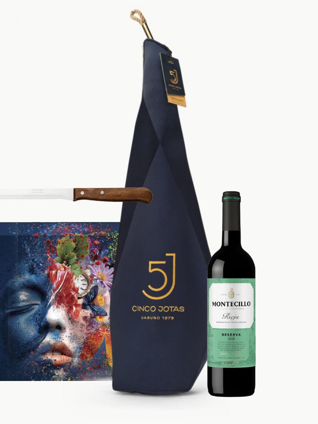 - Cuchillo jamonero Arcos y botella de vino tinto Montecillo Reserva